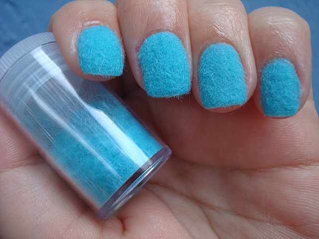 A inspiração destas unhas, veio deste blog americano, quem quiser ver clica aqui. Ela usou outro tipo de produto - pelinhos, que ela encontra no país dela, no Brasil a marca que tenho visto mais a venda é o Siq Floc, que vem num pote grande e custa em torno de R$7 normalmente. A dica é comprar junto com as amigas e dividir, pois dá para usar muitas vezes. Tem também em quantidade menor na loja BBF, por R$2 o pacote.